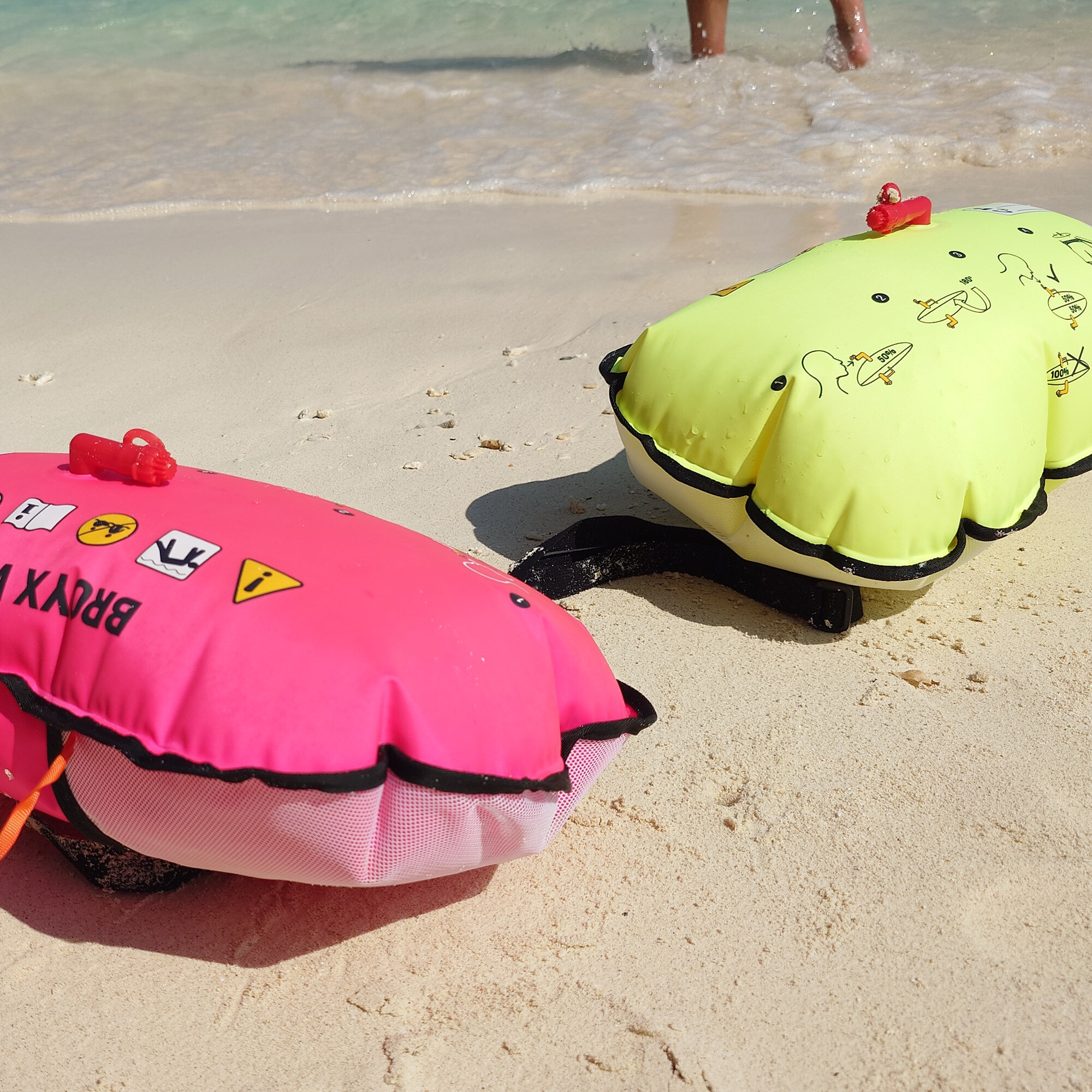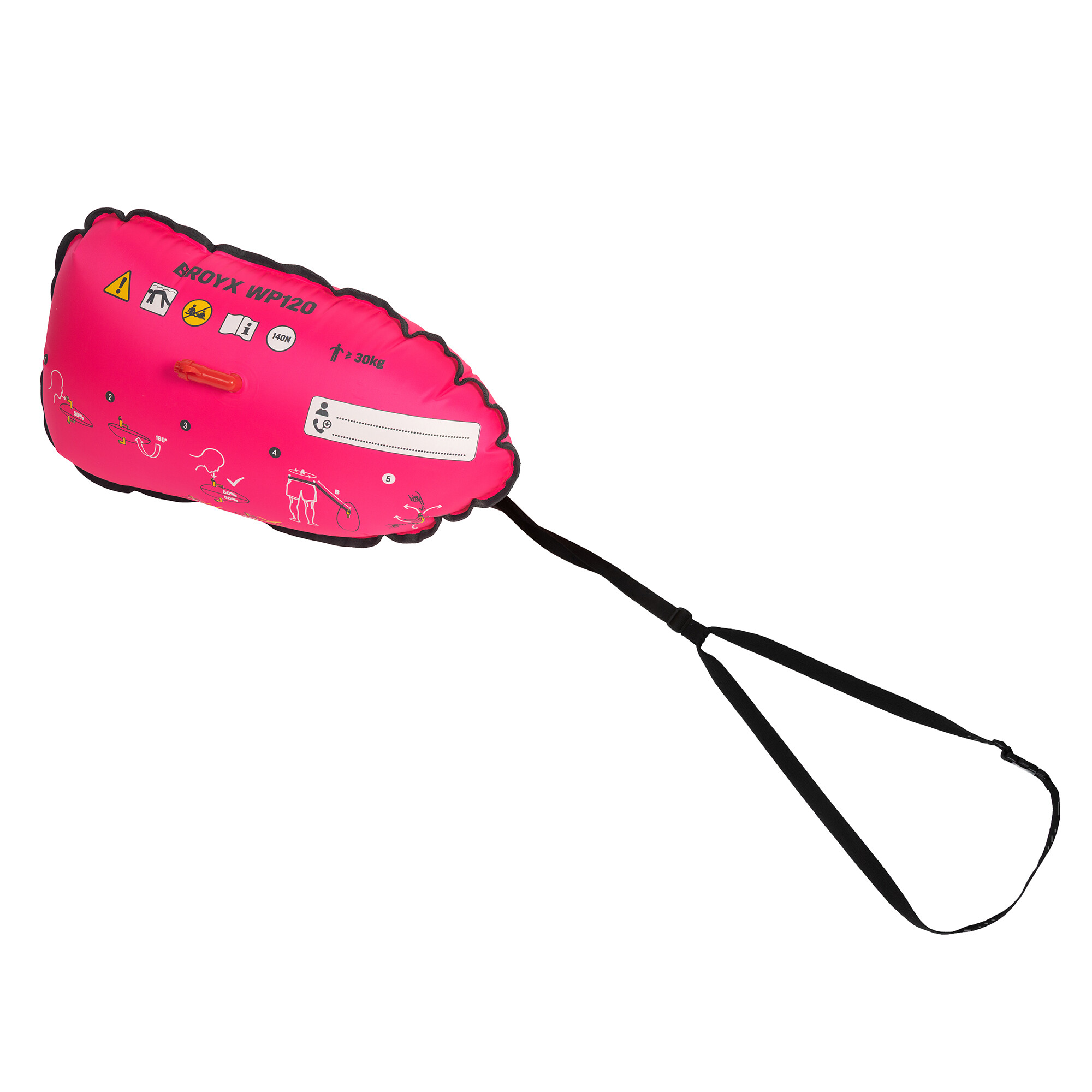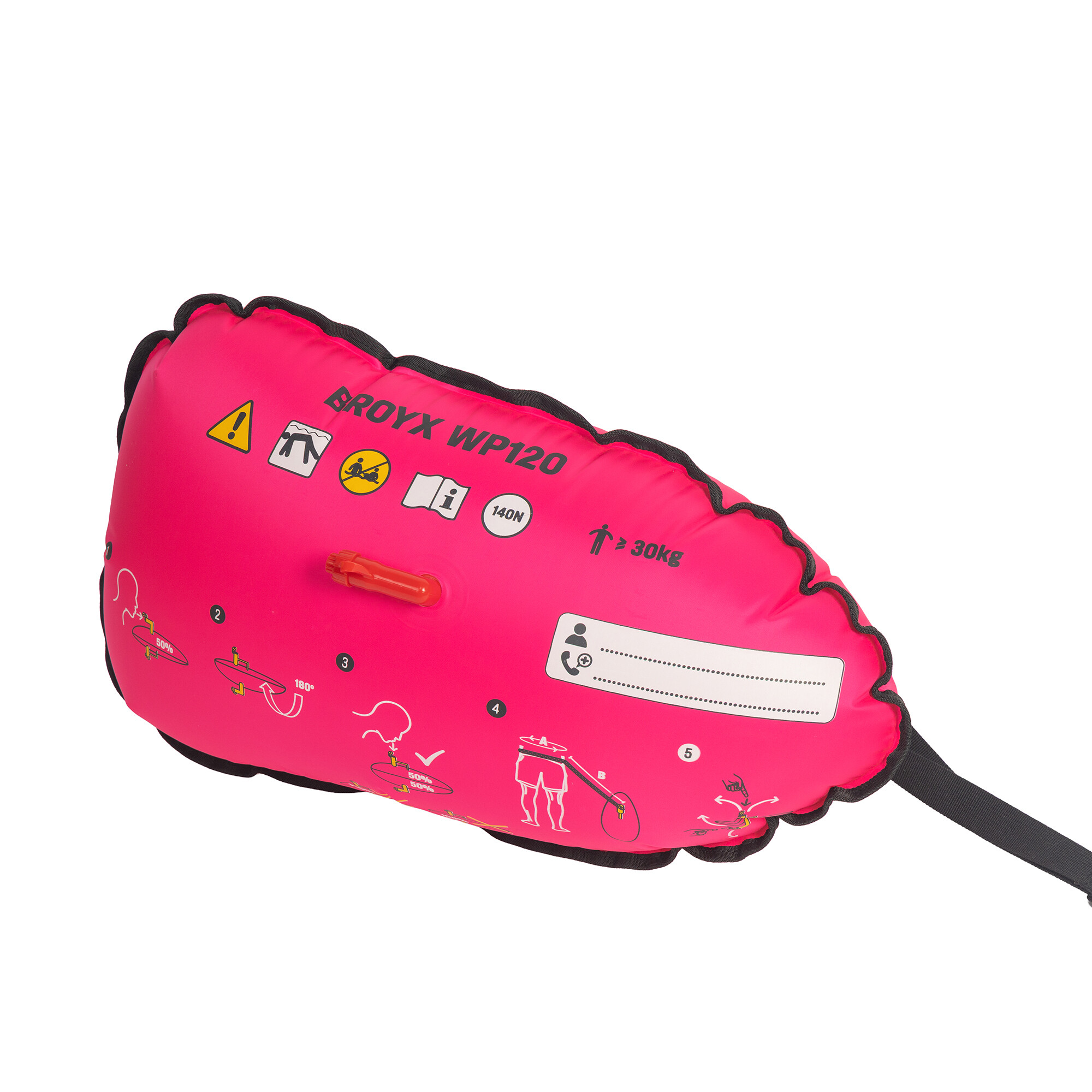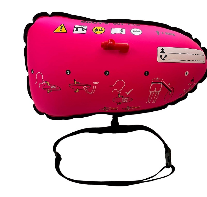 Dwukomorowa konstrukcja zwiększa bezpieczeństwo w przypadku ew. perforacji. Podwójne szwy wzmacniają konstrukcję. Gwizdek umożliwia wezwanie pomocy. Boja BROYX 120 jest przetestowana zgodnie z obowiązującą normą europejską PN-EN 71-3:2019+A1:2021 i spełnia jej wymagania.