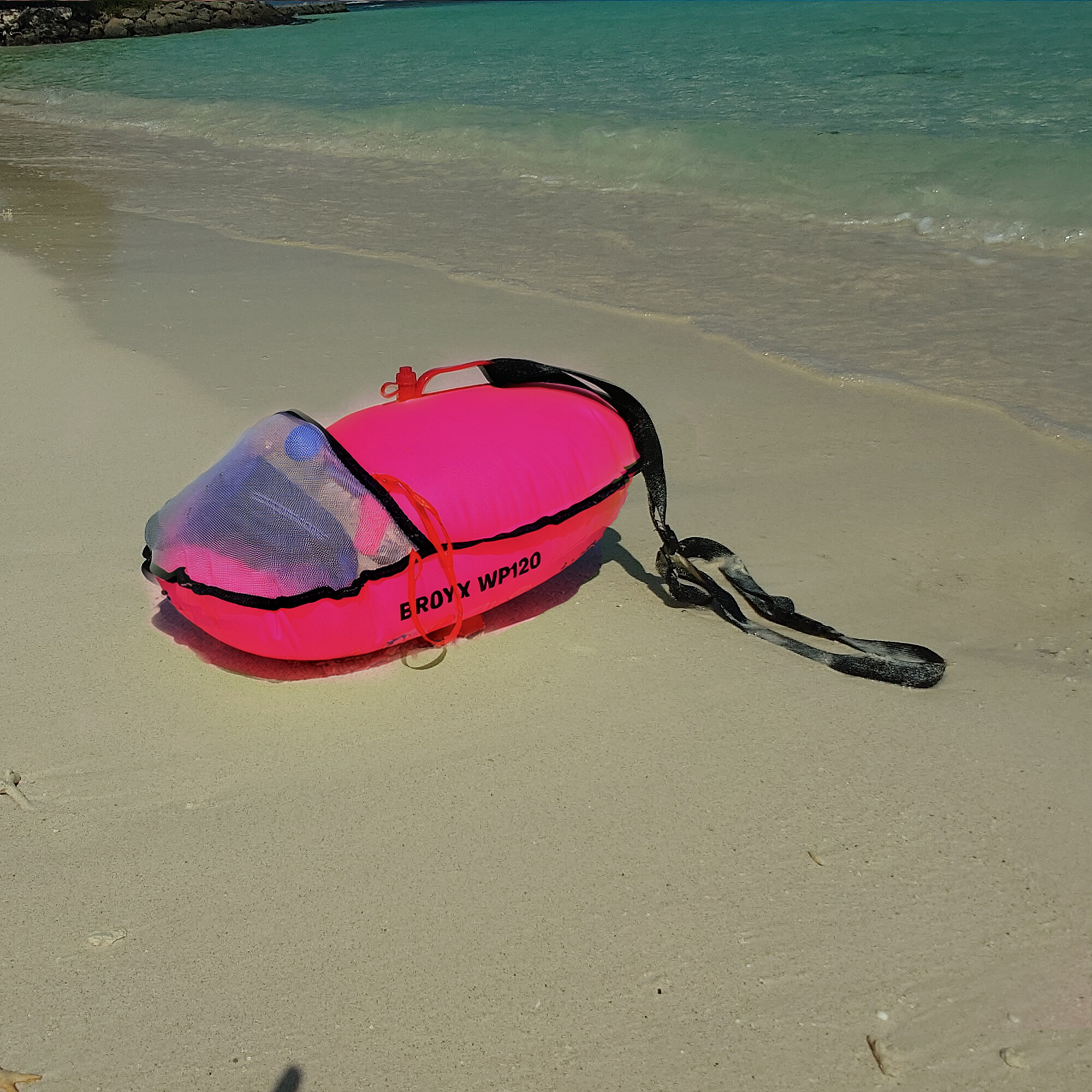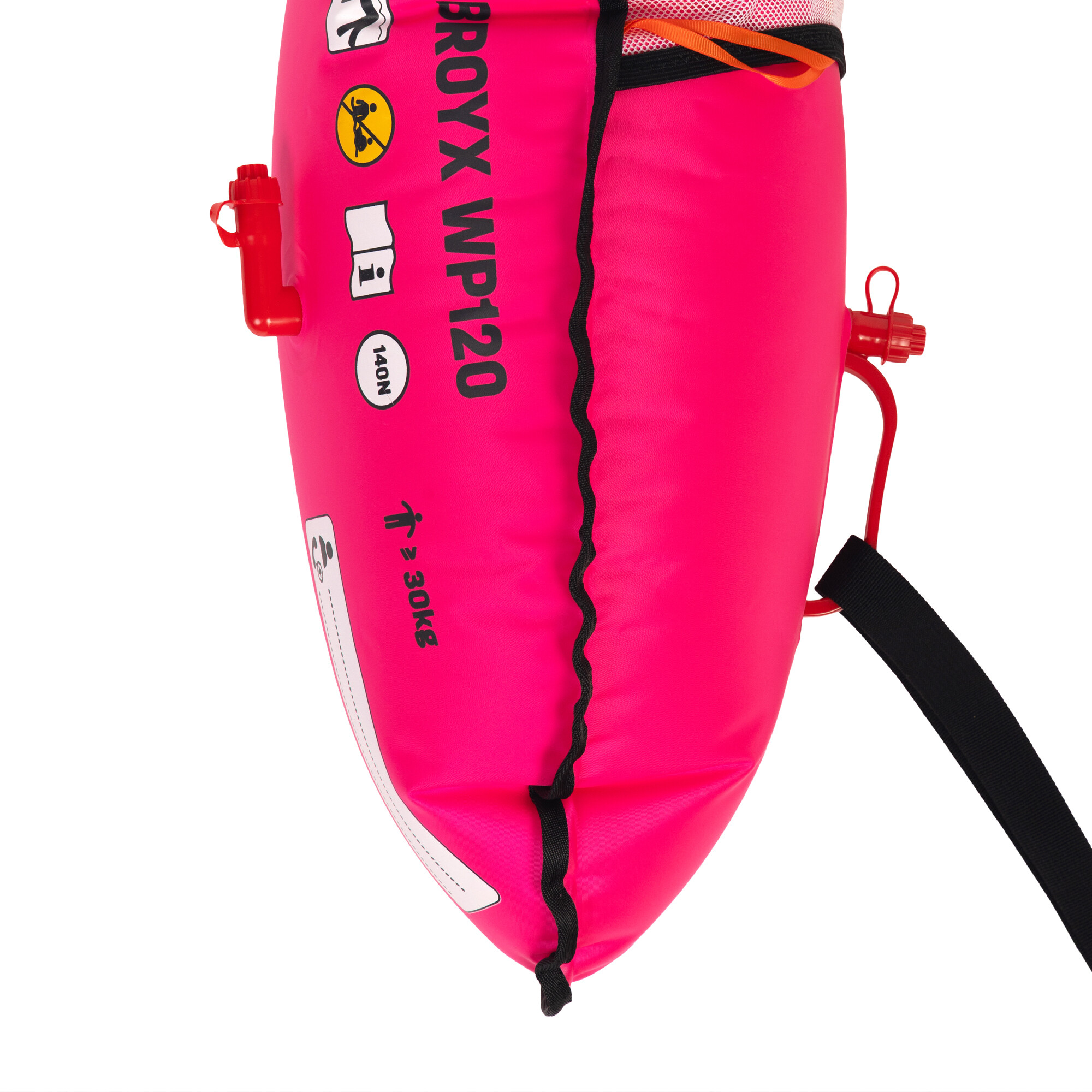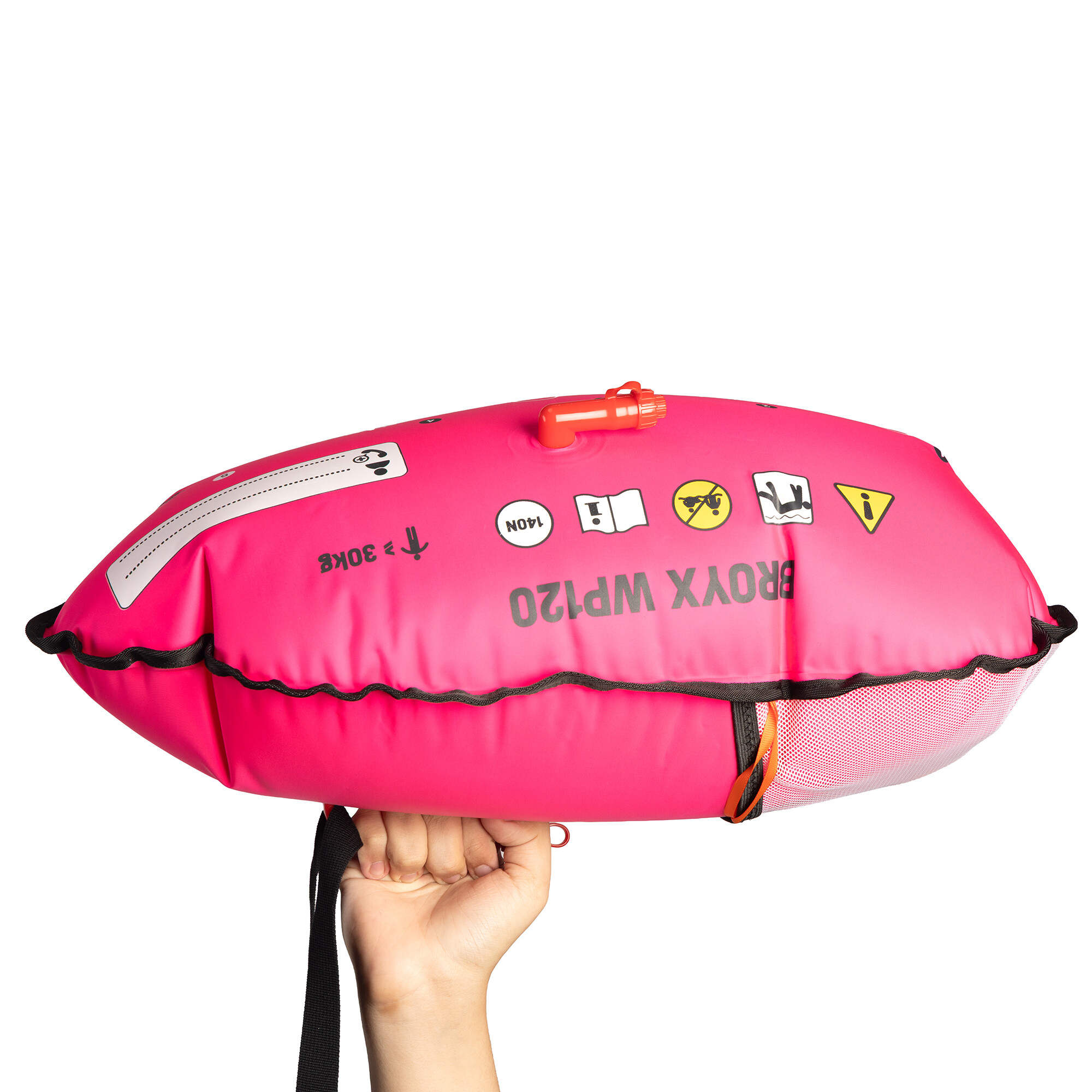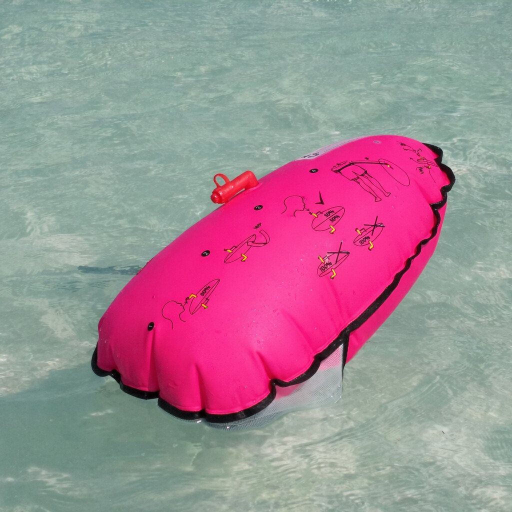 Boja zwiększa Twoją widoczność podczas snurkowania i asekuruje podczas pływania. Rączka na dole boi uławia chwyt i odpoczynek. Do siatki zmieścisz batony lub bidon z wodą. Nadmuchiwana, dwukomorowa, z gwizdkiem.