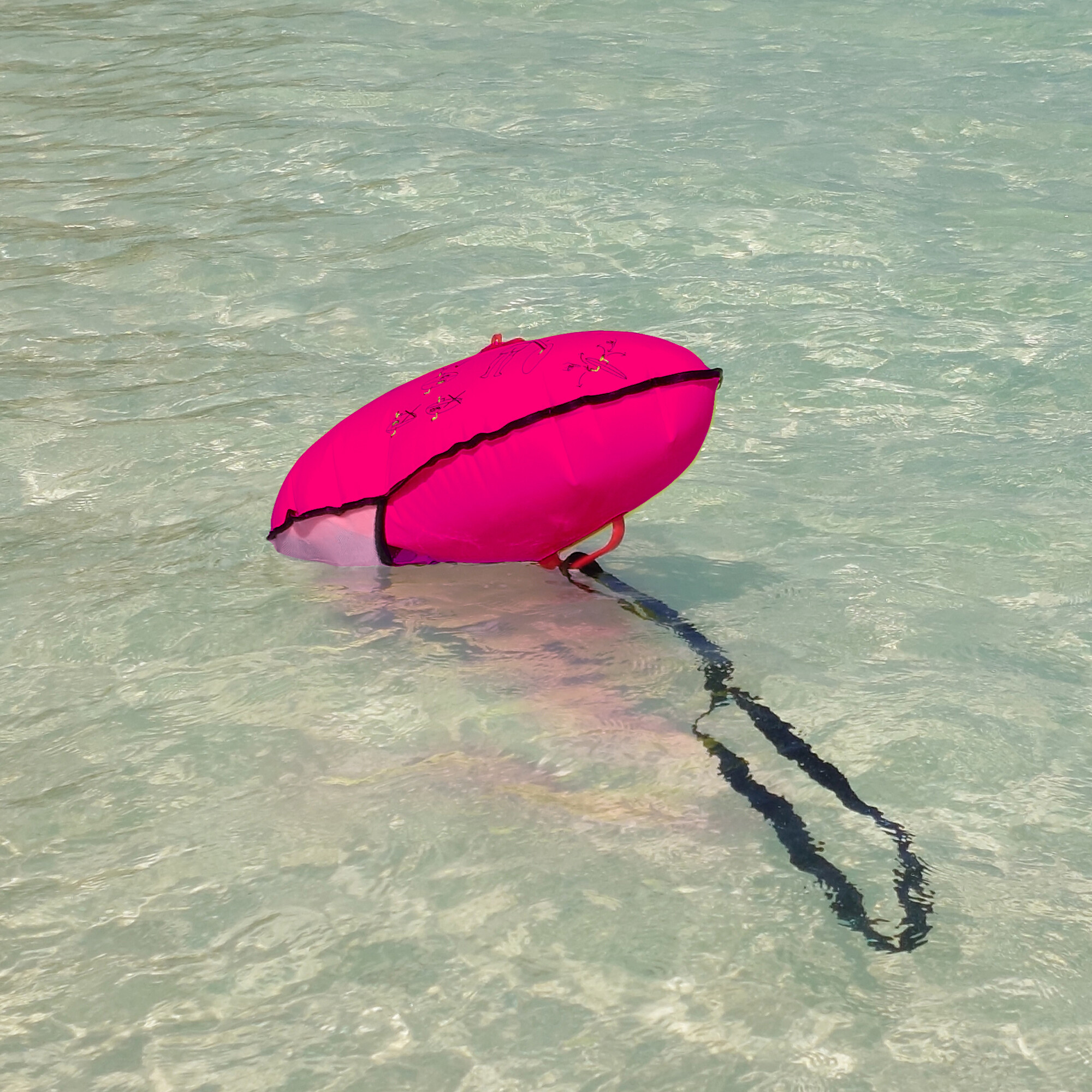 Konstrukcja oraz użyte materiały umożliwiają użytkowanie w wodzie morskiej.Boja posiada rozpinany, regulowany pas biodrowy, z możliwością dopasowania.Odległość boi od ciała pływaka można dobrać dzięki regulacji długości uprzęży.